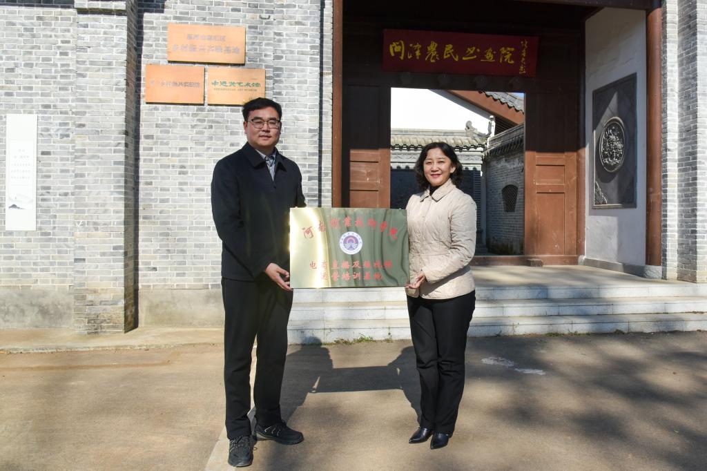 会后,夏新颜与张少威卫共同为“河南职业技术学院电商培训基地”和“文化旅游学院教学实践基地”揭牌。
