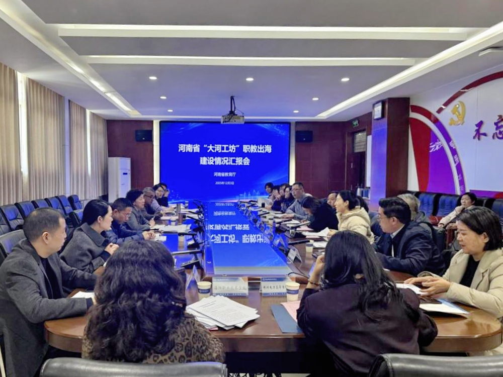 近日,河南省“大河工坊”职教出海建设情况汇报会在学校勤业楼332会议室召开。河南省教育厅对外合作与交流处处长王华星出席并讲话。河南省教育厅职成教处、对外合作与交流处,河南农业大学国际教育学院、华北水利水电大学国际教育学院等单位专家学者和首批14家“大河工坊”立项与培育建设单位代表共30余人参加会议。
