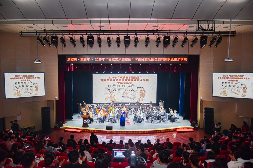 本次音乐会由河南省教育厅、河南省文化和旅游厅、河南省财政厅联合主办,河南歌舞演艺集团、河南民族乐团承办,特邀全国十大民族乐团——河南民族乐团倾情献艺。这支成立于1957年的顶尖乐团,历经近七十载磨砺,涌现出郝玉岐、桂习礼等一大批享誉全国的演奏家,创作并演奏了《百鸟朝凤》《中州韵》等众多经典曲目,多次为中外政府首脑献演,足迹遍布三十多个国家及港澳台地区,2023年获评文化和旅游部全国十大民族乐团称号。其坚持十七年的“高雅艺术进校园”活动,已成为传播传统文化、赋能青年成长的重要载体,此次更是为河职71周年校庆量身打造演出阵容,由著名指挥家杨明执棒,汇聚凌娅雯、魏雪珂、孙乾坤等一众优秀演奏家,以专业水准与深厚情怀致敬校庆。(供稿:靳兵;审稿:王璐)