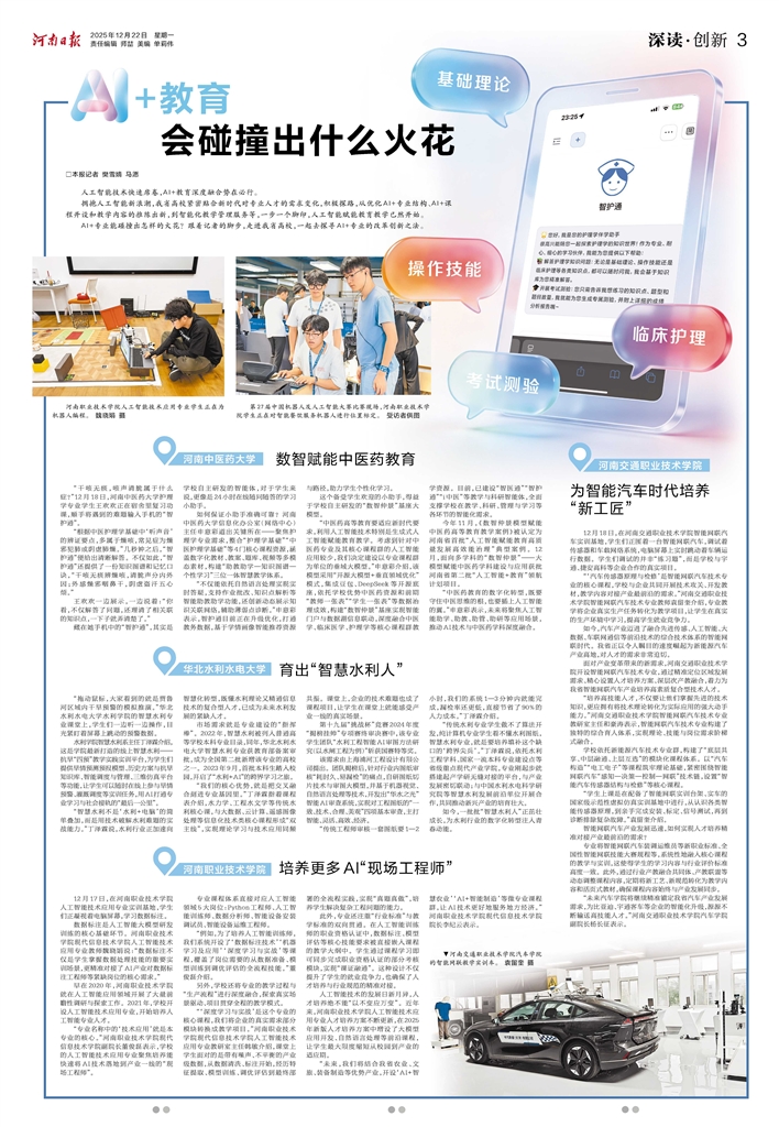 “未来,我们将结合我省农业、文旅、装备制造等优势产业,开设‘AI+智慧农业’‘AI+智能制造’等微专业课程群,让AI技术更好地服务地方经济。”河南职业技术学院现代信息技术学院院长李纪云表示。