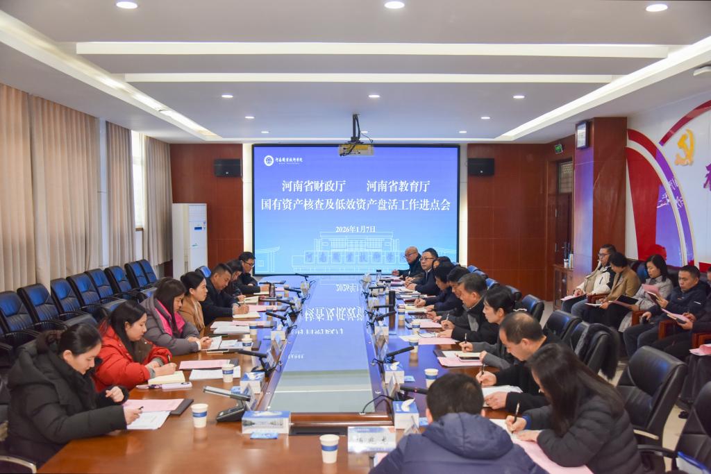1月7日上午,省财政厅、省教育厅国有资产专项核查工作组在学校勤业楼332会议室召开了国有资产核查及低效资产盘活工作进点会。省财政厅资产管理处副处长段其凤、省教育厅财务处二级调研员周辉,河南开放大学(郑州信息科技职业学院)、河南大学河南戏剧学院、河南经贸职业学院、河南艺术职业学院和我校主管国有资产管理工作的副校长以及国有资产管理部门负责同志参加会议。