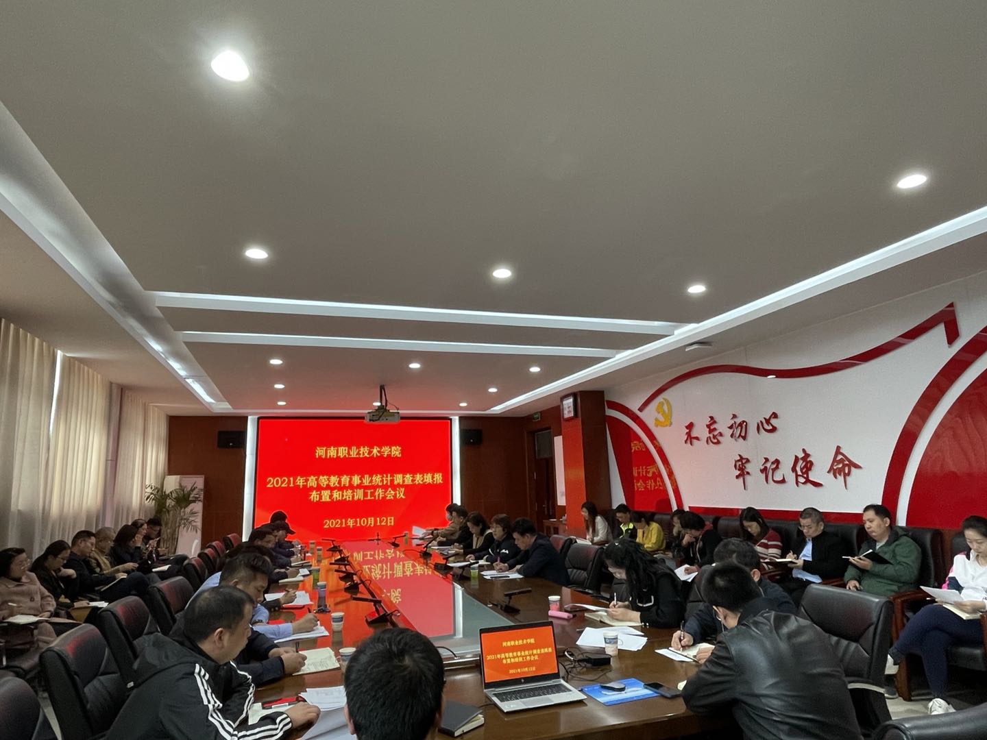 10月12日下午,我校在行政楼332会议室召开2021年高等教育事业统计调查表填报布置和培训工作会议。副院长肖珑参会并讲话。相关职能部门负责人及高等教育事业统计调查表填报信息员共35人参加会议。
