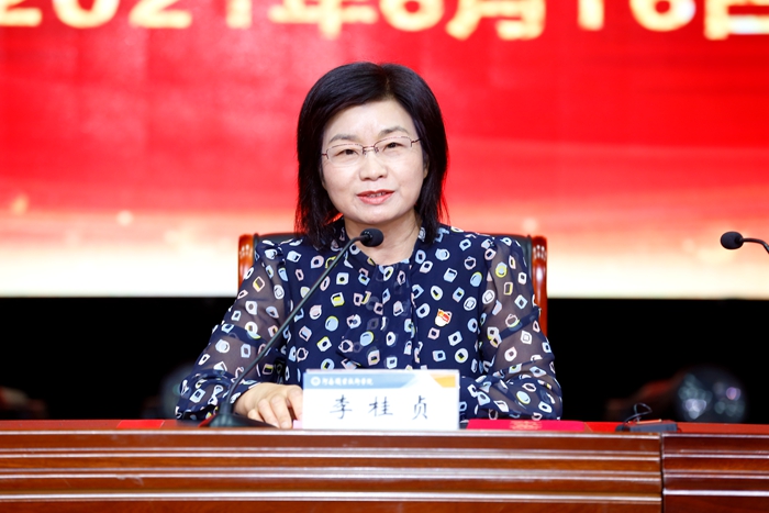 校党委书记李桂贞对2021届毕业生给予了希望与嘱托。她希望同学们:一是要做终身学习者,在多变的时代笃定前行。要树立终身学习的理念,不仅要坚持从书本中汲取“营养”,还要在工作中求知识,在实践中学经验,始终保持求知若渴、积极进取的心态;二是要做忠诚的责任担当者,将履职尽责视为本分。要秉持爱国奉献的价值追求,把“小我”融入“大我”,常怀爱国之情,砥砺强国之志、实践报国之行,在奉献中展现青年人的担当,在奉献中实现人生价值、升华人生境界;三是要做优雅的生活者,用善良和包容赢得尊重。学校持续实施人文素养培育工程,就是要培养同学们的人文精神、审美情趣、艺术精神、道德情操,就是要能够善于发现美,懂得欣赏美,要有包容心,只要我们做人留善念,做事留真诚,我们就收获了快乐之本。她还祝福同学们从容面对未来,砥砺靓丽人生,不负时代,不负韶华,扬帆远航,踏浪前行,拥有锦绣前程,拥有幸福人生。