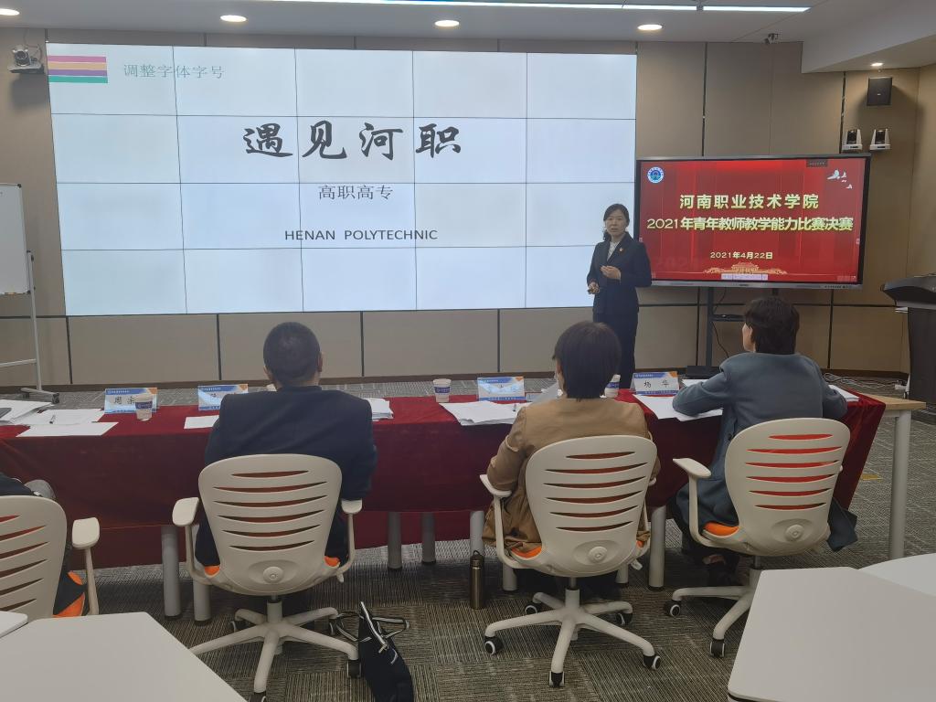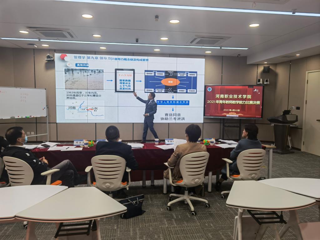 4月22日,我校在明知楼举办2021年校级青年教师教学能力比赛现场决赛。院长梅乐堂、教务处处长李小强、决赛评委组5人、参赛教师30人、教务处相关工作人员参加了赛前开幕式。比赛历时近6个小时,最终评出一等奖3名、二等奖6名、三等奖9名。