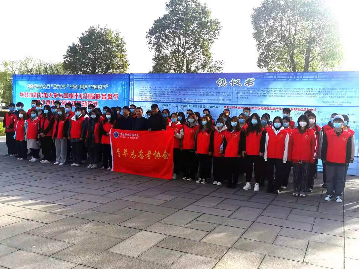 3月21日,学校后勤管理处联合校团委,组织60名青年志愿者参加了在华北水利水电大学举行的郑州市2021年“世界水日·中国水周”系列宣传活动启动仪式。教师和志愿者代表在印有节水倡议书的签名墙上郑重地签名,表达了爱惜水、节约水的志愿和决心。并观看郑州市节水型城市建设专题片、南水北调宣传视频,共同参与了节水知识有奖竞答和问卷调查等活动。