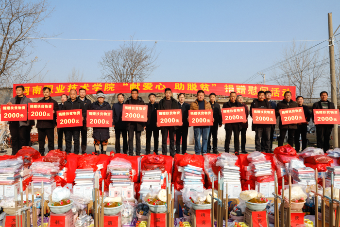 元旦将至,为把新年问候和祝福及时送到困难群众身边,12月23日上午,带着学校师生的重托、带着对困难群众的深情牵挂,院长梅乐堂、副院长李玉峰带领宣传部(帮扶办)、发展规划处、后勤管理处、烹饪食品与健康学院相关负责同志赴我校结对帮扶县舞阳县,深入贫困村章化镇岭张村,开展走访慰问活动,送去价值6万元的慰问物资,并前往舞阳中等专业学校调研校地结对帮扶工作。