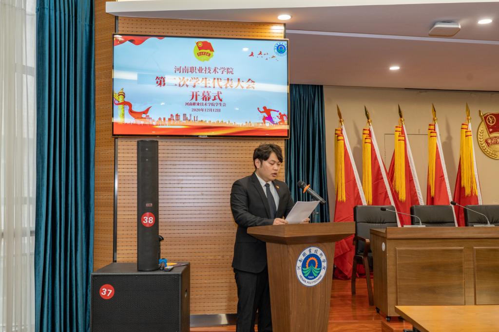 本次大会的主题是:以习近平新时代中国特色社会主义思想为指导,全面贯彻落实党的十九大和十九届二中、三中、四中、五中全会精神、团十八大以及全国学联二十七大精神,进一步增强“四个意识”、坚定“四个自信”、做到“两个维护”,带领全校广大青年学生勤奋学习、勇于担当、高扬梦想、争创佳绩,在“双高”校建设、实现中华民族伟大复兴的中国梦的进程中书写青春篇章。大会通过了《河南职业技术学院学生会章程》,选举产生了河南职业技术学院第二届学生会主席团成员。