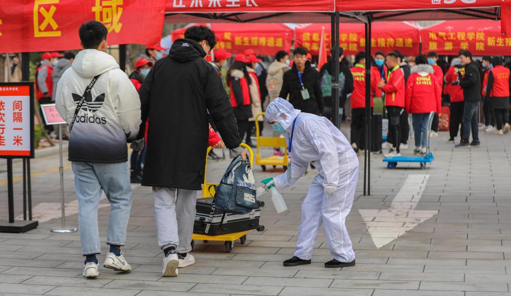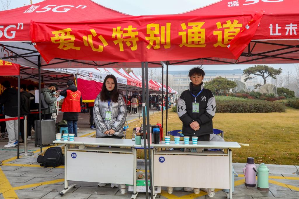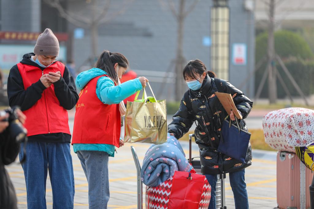 校领导一行实地查看了新生行李消杀、身份核验、测温、扫描健康码、身份确认、进入校园等报到环节,与报到新生进行了亲切交流,向迎新工作人员详细了解了学生报到基本情况,感谢大家在寒冷的天气为确保新生顺利报到而付出的辛勤努力,并叮嘱他们一定要持续做好个人防护,注意自身健康和安全。迎新现场在老师和志愿者的组织引导下,程序规范、秩序井然。