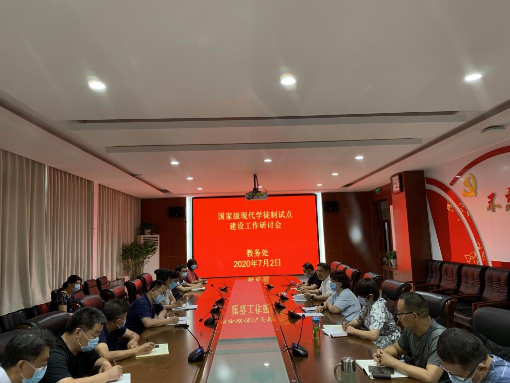 7月2日下午,我校在行政楼332会议室召开国家级现代学徒制试点建设工作研讨会。副院长肖珑参会并讲话。教务处、合作交流处及相关二级学院负责人,试点专业教研室主任等20余人参加了会议。
