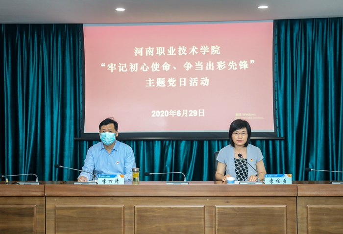 主题党日活动上,与会党员面向党旗,在党委书记李四清的带领下,重温了入党誓词。信息工程学院党总支书记李明玉等基层党组织书记代表围绕基层党组织建设进行了交流发言。