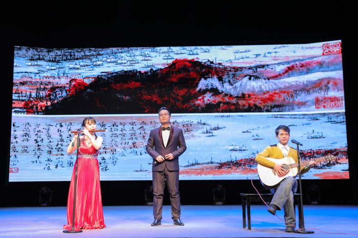 晚会在《我和我的祖国》中落下帷幕。全体演员和现场观众齐声大唱,唤醒全场师生心底最炽热、最真挚、最高尚的爱国之情。