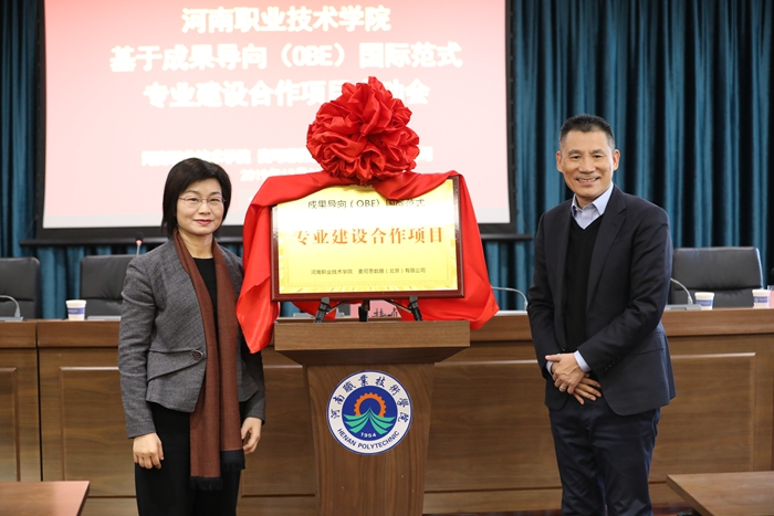 随后,李桂贞和王伯庆共同为我校成果导向(OBE)国际范式专业合作项目揭牌,宣布项目正式启动,并为数控技术试点专业的核心小组组长、成员颁发了聘书。