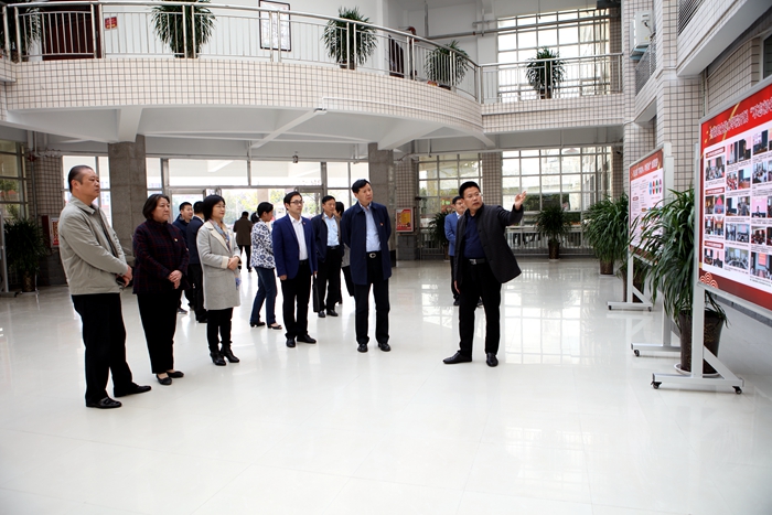 会议开始前校党委书记李四清、院班子成员陪同省委高校工委第二巡回指导组吴春阳同志共同参观学习了河南职业技术学院“不忘初心、牢记使命”主题教育活动展、党史展、学校创新发展成果展。
