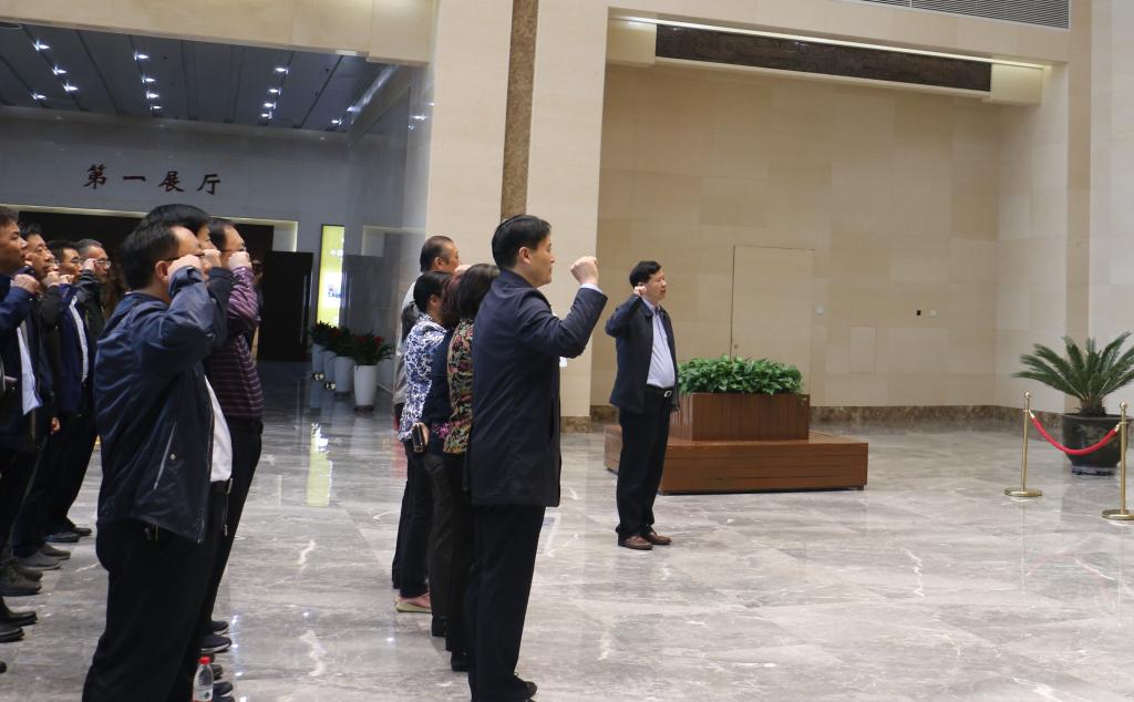 刚入馆内,在党委书记李四清领誓下,全体人员举起右拳,在鲜红的党旗下重温入党誓词,进行庄严宣誓,感悟入党初心、坚定理想信念。随后,全体人员参观了中国古代廉政文化展、中国共产党党风廉政建设展、新时代河南全面从严治党成果展三个主题展厅,并观看了相关宣教视频。在讲解员的引导下,大家通过图片资料、全息投影等方式,不停驻足观看、品读沉思,力求从五千年中华文明中探寻廉政文化的历史源流,从廉政建设的宝贵经验中领悟中国共产党人的政治追求,从中原大地全面从严治党的新实践中感受我党一以贯之的廉政品格,永葆共产党人清正廉洁的政治本色。