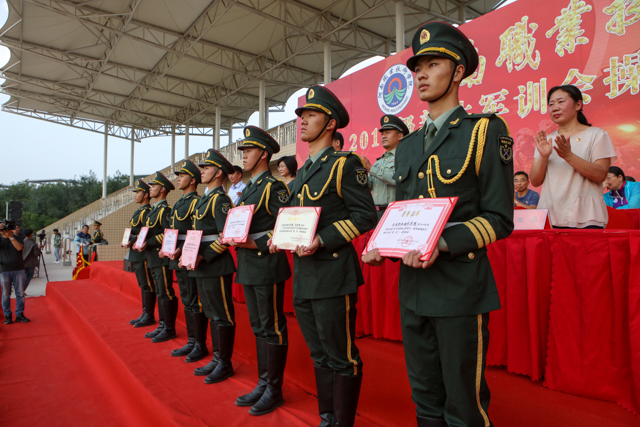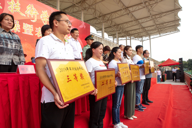 肖珑副院长宣读了军训综合评比结果,环境艺术工程学院荣获“军训综合评比一等奖”,苗原等20名教官荣获“军训优秀教官”荣誉称号,周亚龙等50名新生荣获“军训先进个人”荣誉称号;大会同时对周愉琪等8名在“河南省首届军事训练营”取得突出成绩的学生进行了表彰。