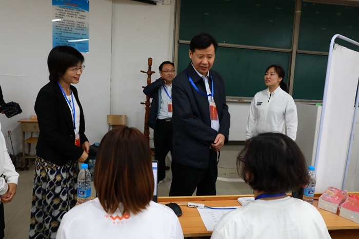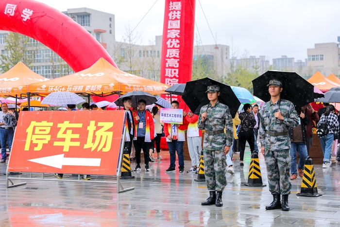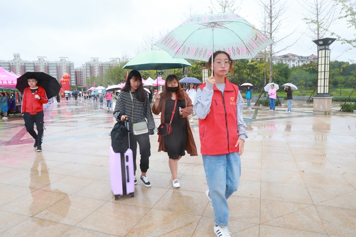 秋雨绵绵,凉风习习,9月15日,我校8100余名2019级新生怀揣着梦想,走进了美丽的河职校园,开启了人生新的旅程。迎新期间,校领导李四清、李桂贞、邵芙蓉、田华、李玉峰、王皓和夏喜利在有关单位负责人的陪同下,冒雨前往新生报到处视察看望,检查迎新工作的进展情况并与新生家长和学生进行了交谈。
