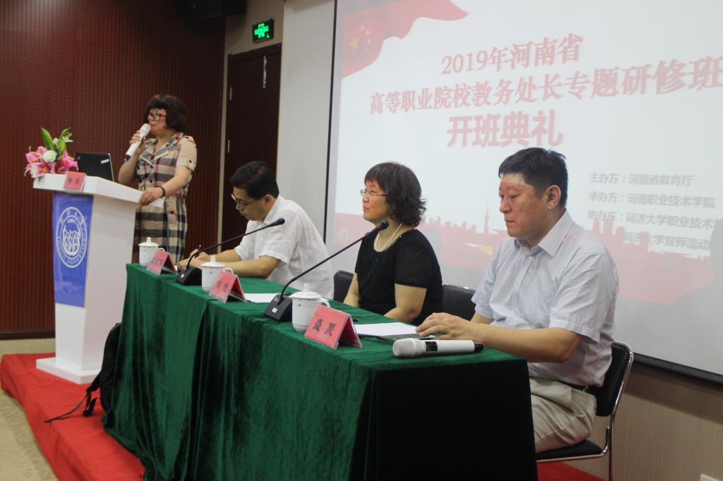 为贯彻落实《国家职业教育改革实施方案》和全国教育大会精神,切实加强我省高等职业院校教学管理工作,进一步提升教学管理干部的业务素质和管理水平。7月9日上午,由河南省教育厅主办,我校承办,同济大学职业技术教育学院协办的“2019年河南省教务处长专题研修班”开班典礼在同济大学举办。学校副院长肖珑、同济大学职业技术教育学院书记王继平出席典礼并致辞。来自全省高职院校的80余位教务处长参加了开班典礼。