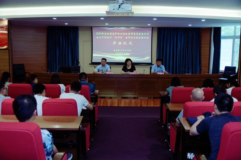 7月8日上午,我校承办的2019年河南省高等职业院校教师素质提高计划电子产品设计“双师型”教师专业技能国家级培训班正式开班。副院长肖珑及教务处、电气工程学院相关负责人,以及来自全省高职院校的37名教师共60余人参加了开班仪式。