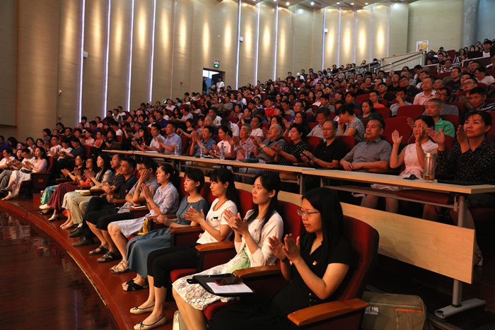 7月5日上午,我校在音乐厅召开争创省级文明校园动员大会,对2019年争创省级文明校园工作进行动员部署。省直文明委副主任、省直工委副巡视员万英出席会议并讲话。校党委书记李四清作动员讲话。校领导班子全体成员,学校离退休干部职工代表、科级以上(含科级)干部、正高级职称人员、各部门精神文明专干和教职工代表共500余人参加会议。大会由院长李桂贞主持。
