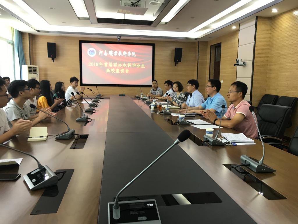 6月26日上午,我校在行政楼317会议室举行2019年首届联办本科毕业生离校座谈会。校工会主席夏喜利及学生处和相关二级学院有关负责人,以及我校2019届20名本科毕业生代表参加了座谈会。