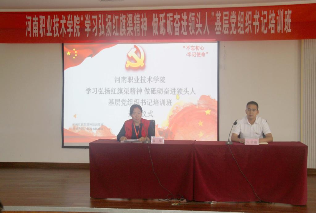 开班仪式上,田华副院长作了题为《学习弘扬红旗渠精神做砥砺奋进领头人》的专题报告。她指出,全体学员要深入学习贯彻习近平新时代中国特色社会主义思想、全国教育大会精神和全省教育大会精神,强化思想引领,充分认识培训的重要意义;要深刻把握新时代优秀支部书记的具体要求,抓学习突出政治素养提升、学党务提升工作水平、严纪律规范党的政治生活、强管理激发组织活力、严把关规范党员发展程序、促工作提供优质服务、带队伍要敢担当善作为;要牢记肩上光荣使命,切实履行好作为党支部书记的应尽之责,最大程度上发挥本次培训班的效能。林州红旗渠精神培训基地副主任张书铭致欢迎词,希望参训的全体学员要珍惜机会,认真扎实完成好这次培训学习的任务,将红旗渠精神的精髓带到今后的工作学习生活中去。