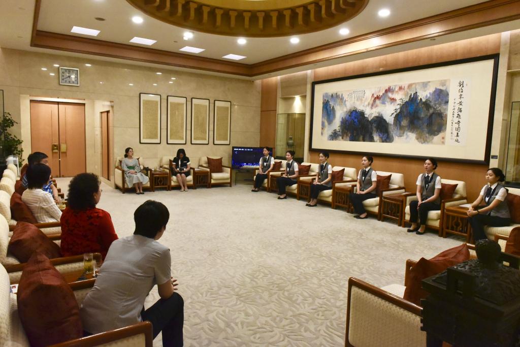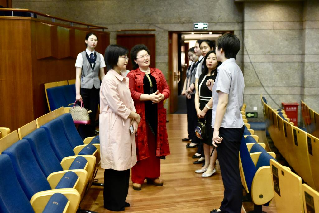 一行人在北京保利剧院管理部总经理杨松颜的陪同下,参观了大厅、休息室、后台化妆间及剧场,对企业文化与学生的工作环境进行了全方位的考察。随后,李桂贞院长与顶岗实习学生进行亲切交谈,通过“收获与困惑”话题,听取了学生们的工作心得与生活情况。