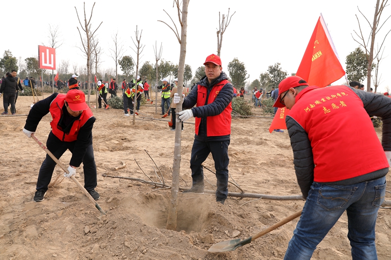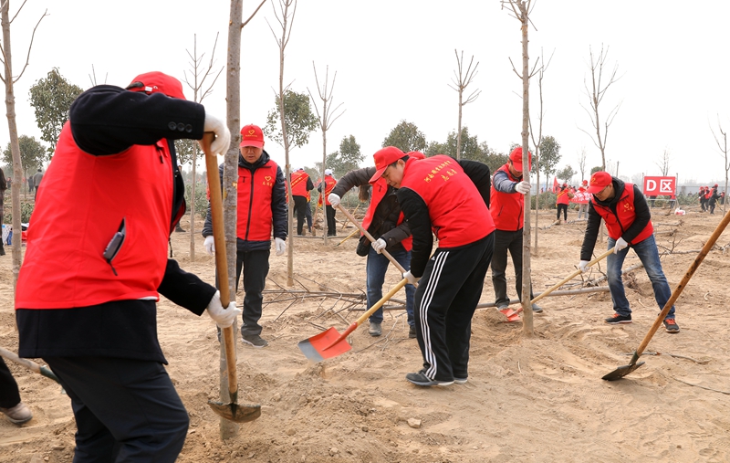 为积极响应党的十九大“开展国土绿化行动”的号召,2月28日上午,我校组织37名教师志愿者赶赴惠济区花园口镇八堡村黄河湿地,参加了由省绿化办、省直绿化办和省直文明办组织的全民义务植树活动。