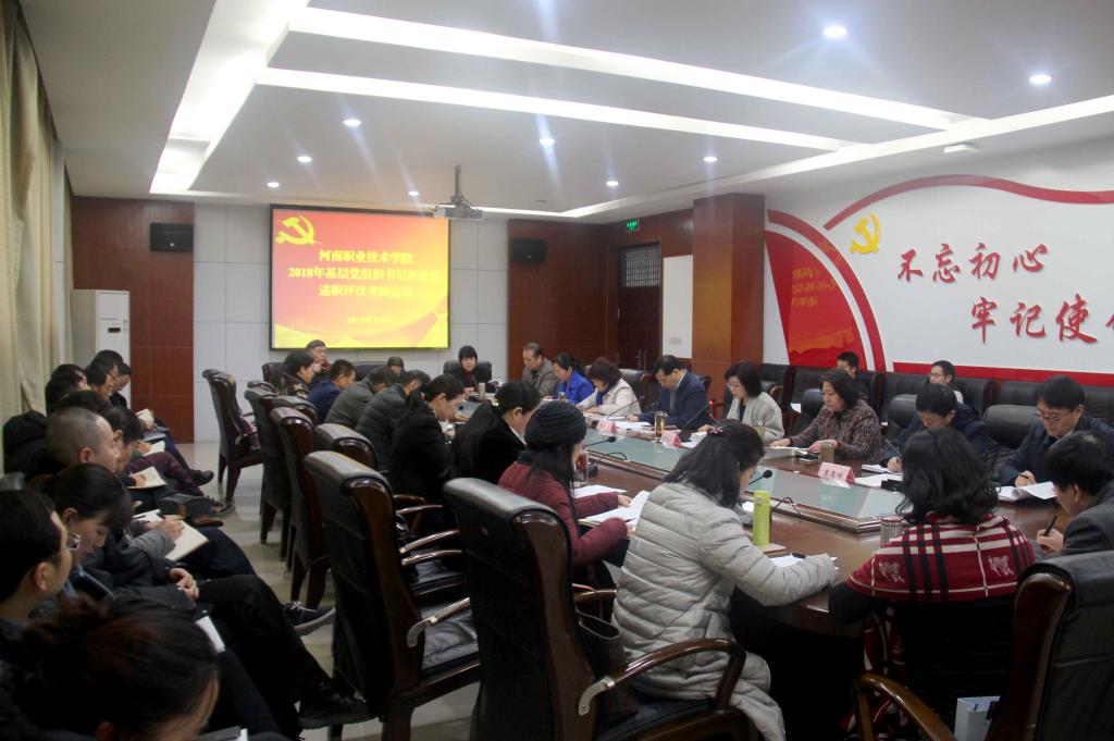 1月9日上午,我校在行政楼332会议室,召开了2018年度基层党组织书记抓党建述职评议考核会议。校党委全体成员、各党总支、直属党支部书记和机关各党支部书记共37人参加了会议。院党委副书记、院长李桂贞同志主持会议。