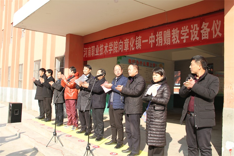 12月12日上午,我校工会主席夏喜利赴舞阳县出席章化镇第一初级中学捐赠仪式,并考察帮扶工作。校工会、“帮扶”办相关同志陪同参加。本次学校共捐赠课桌椅66套、计算机3台、打印机2台。舞阳县政府副县长宋春华,县教育科技体育局、章化镇和章化镇第一初级中学相关领导及部分师生600余人参加了捐赠仪式。