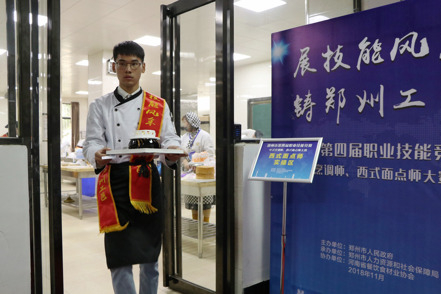 11月13日至11月14日,我校烹饪食品与健康学院承接的由郑州市人民政府主办,郑州市人力资源和社会保障局承办的郑州市第四届职业技能(中式烹调师和西式面点师项目)竞赛工作,在学校领导的关怀指导和多个部门的大力配合下,竞赛取得圆满成功。