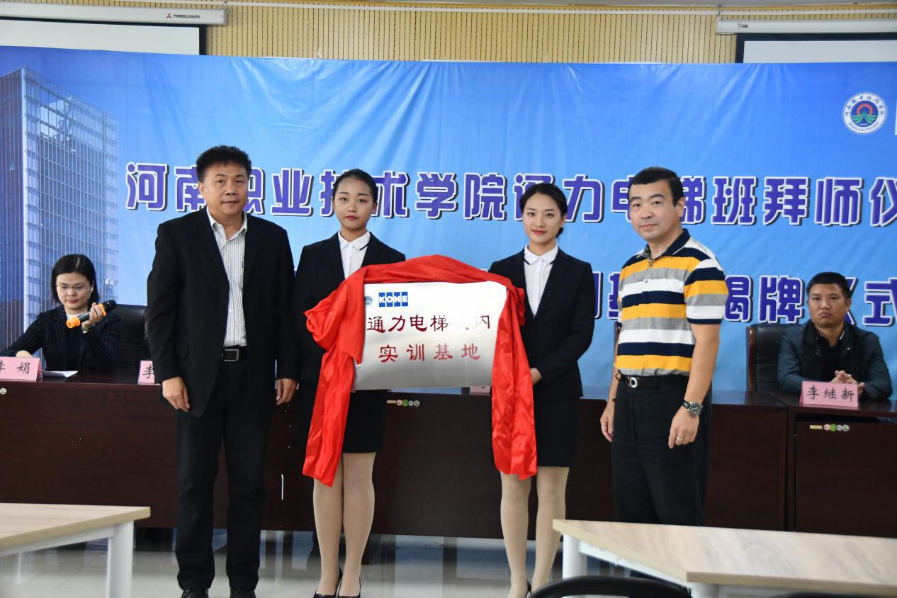 10月19日上午,电气工程学院与通力电梯公司举行了“通力电梯班拜师仪式暨通力电梯校内实训基地揭牌仪式”。通力电梯郑州分公司总经理祁斌等企业领导,电气工程学院相关负责人及教师代表,以及2016级、2017级电梯工程技术专业100余名学生代表参加了拜师仪式。