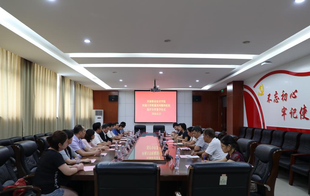8月22日下午,河南大学附属郑州颐和医院党委书记、院长赵志刚,纪委书记、执行院长邢海平一行11人在我院行政楼332会议室就学校医疗保障合作与我校签订合作合同。我校院长李桂贞、副院长田华以及党政办、宣传部、后勤处相关人员出席了签约仪式,签约仪式由副院长田华主持。