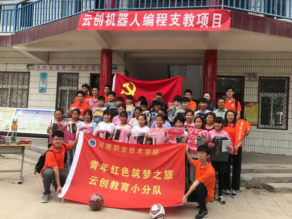 “青年红色筑梦之旅”教育小分队一行10人在信息工程学院蔡晶晶和乔陆老师带领下抵达兰考县张君墓镇张君墓小学及考城镇孙庄小学进行支教活动。此次支教活动依托该学院电商16级苏彦宁《云创机器人编程》创业项目,对兰考农村小学学生进行机器人及人工智能方面教育培训。两天的机器人课程激发了农村学生的科学兴趣,孩子们对人工智能的热爱深深打动了支教的每一个师生,他们纷纷表示,这样的支教活动让他们更加深刻地理解了习近平总书记的“回信精神”,更加坚定了拼搏奋斗、艰苦创业的理想信念。(供稿:温宗和,审稿:张琳)