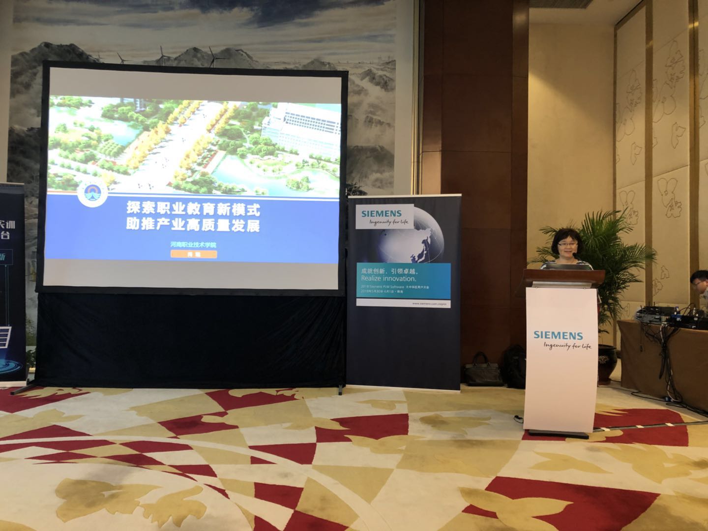 在教育专场研讨会上,肖珑副院长代表学校作了题为“探索职业教育新模式,助推产业高质量发展” 的主旨发言。她向与会嘉宾分享了河南职业技术学院智能制造协同创新中心的一期建设方案和相关成果,并对二期的建设思路和顶层设计做了分享。肖珑副院长的发言赢得了与会嘉宾们的肯定与赞赏,大家对我校的发展思路给予充分认可,纷纷向我校代表交流取经,并希望来校参观学习。