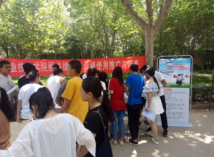 为了解学校师生针对图书馆数字资源的使用情况,便于图书馆日后工作的改善,5月31日,由图书馆主办,超星集团河南分公司协办的首次数字资源推广调查活动在我校周始路有序开展,活动期间吸引了来自全校各个专业的学生踊跃参加。