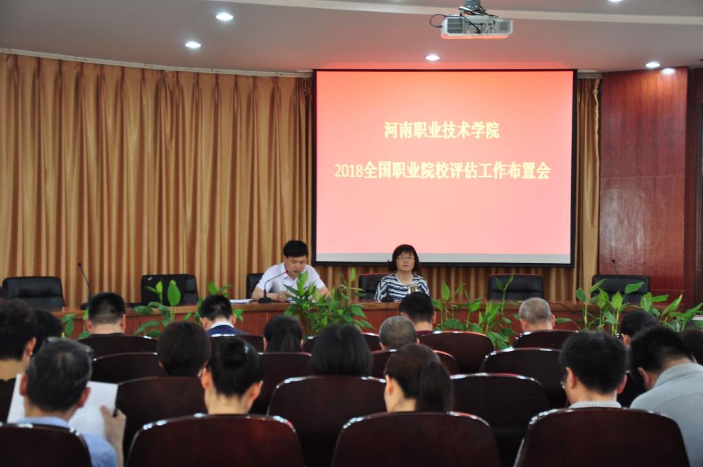 5月29日下午,我校在行政楼圆形会议室召开2018年全国职业院校评估工作布置会议。副院长肖珑,相关处室及二级学院负责人、数据平台信息员等40余人参加了会议。