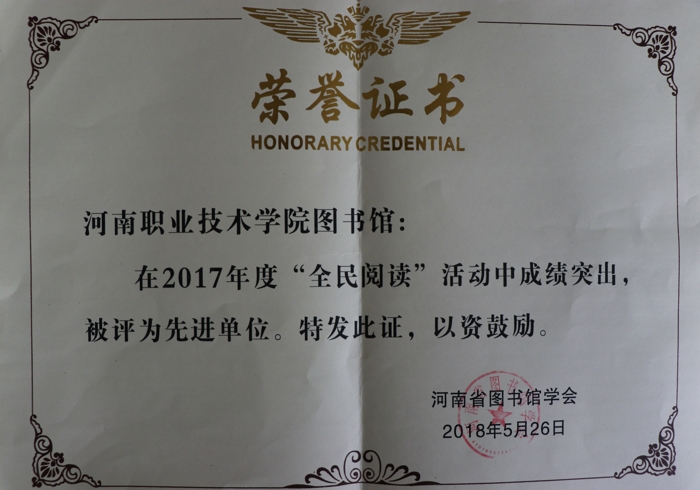 “全民阅读先进单位”评选活动是河南省图书馆学会每年举办的重要活动之一。近年来,我校图书馆一直致力于全民阅读推广工作,通过开展形式多样、内容丰富、创意新颖的活动,扩大了图书馆的影响力。