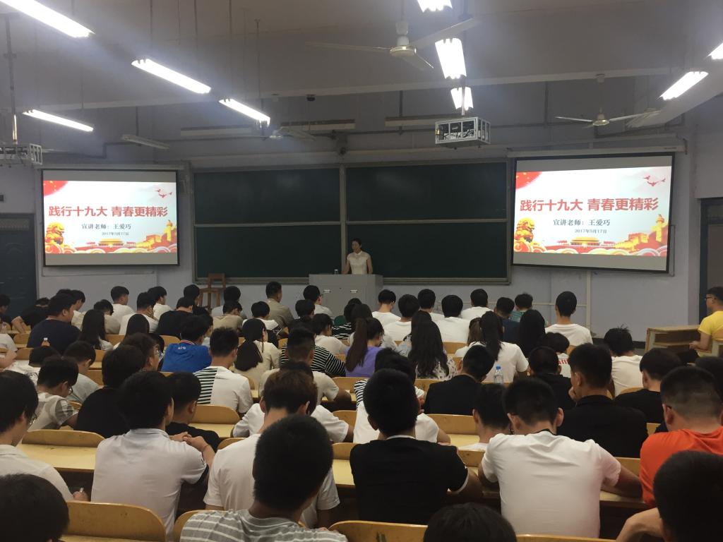 5月17日下午,我校在1101教室举办了“党的创新理论宣讲进高校”之优秀辅导员宣讲活动首场讲座,汽车工程学院辅导员王爱巧作了题为《践行十九大青春更精彩》的主题宣讲活动。来自汽车工程学院和音乐学院的350余名学生听取了讲座。