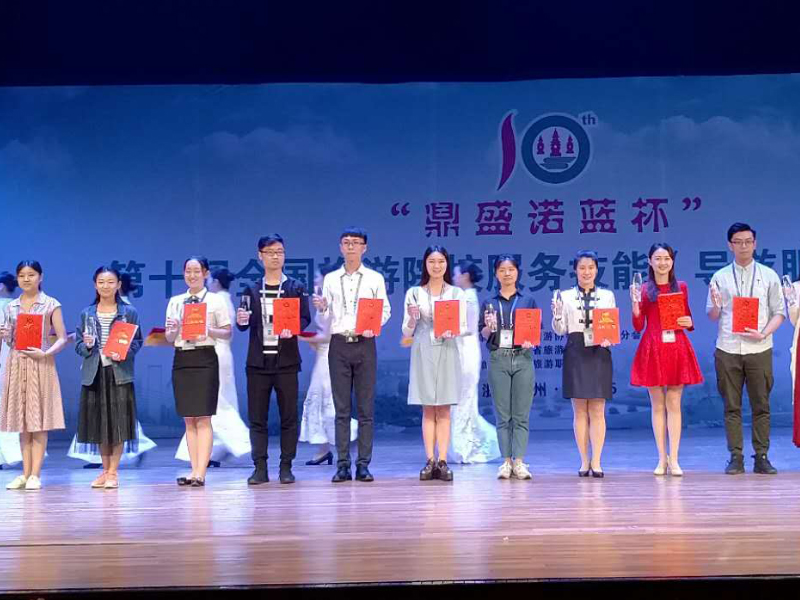 本次大赛共设理论考核、导游讲解(现场)和才艺展示等三个环节,每个环节都制定了严格的行业评定标准,并且首次采用了电子计分系统。我校两名参赛选手在比赛中理论考试满分、现场讲解精彩、才艺表演出众,获得了评审专家的一致肯定,最终以总成绩91.884和90.366的高分分获一等奖,这也是我校历年来在该赛项比赛中取得的最佳成绩。赛前,该院积极组织筛选参赛选手,认真研读赛项规程,制定了严格的训练计划,选手们积极备赛,刻苦训练。此次获奖充分反映了我校较高的教育教学水平,进一步彰显了学校的知名度和美誉度。