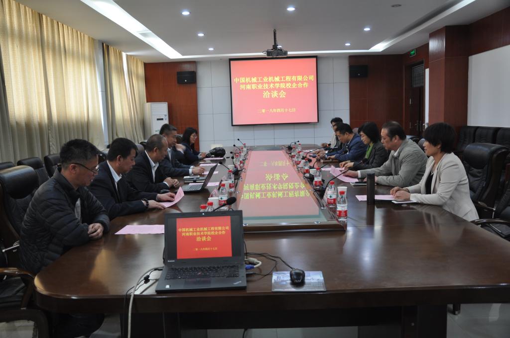 4月17日上午,我校与中国机械工业机械工程有限公司在行政楼A303召开了校企合作洽谈会。中机公司总经理高杰、副总经理周建军和工会主席娄季兴等,学校院长李桂贞、副院长王皓,教务处和机电工程学院相关负责人参加了会议。