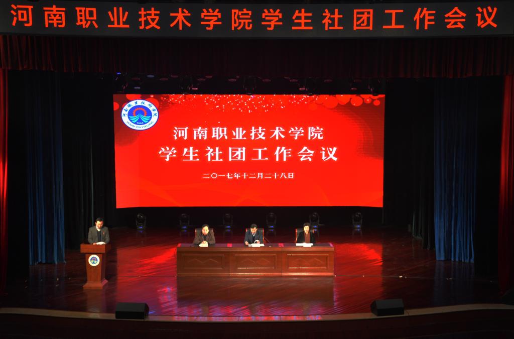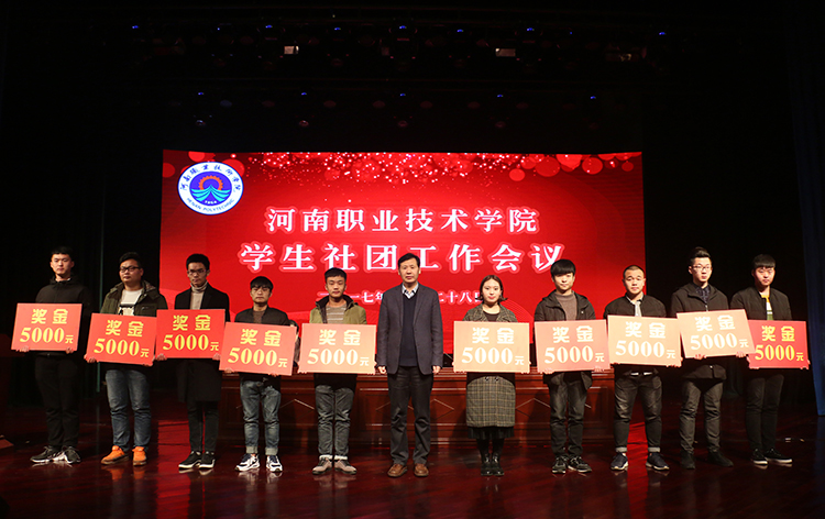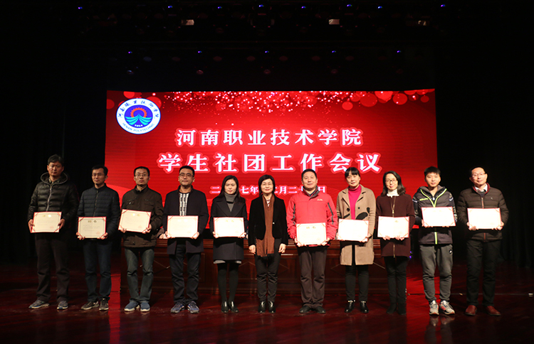 会上,李桂贞院长宣读了《中共河南职业技术学院委员会关于表彰2017年度优秀学生社团的决定》,李四清书记为新星书画社等10个优秀学生社团颁发奖金,李桂贞院长为江团结等10位指导教师代表颁发聘书。团委负责人朱永宽作学生社团工作报告,指导教师代表李淑青和优秀社团代表栗煜隆分别作了发言。