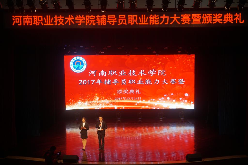 12月14日下午,我院2017年辅导员职业能力大赛决赛暨颁奖典礼在音乐厅隆重举行。河南省教育厅副巡视员李金川,学院党委书记李四清和党委副书记、纪委书记占江出席大赛并为获奖选手颁奖。学工部、团委和各系(院)党、团总支的负责同志,以及全体辅导员老师和部分学生代表观摩了决赛全过程。