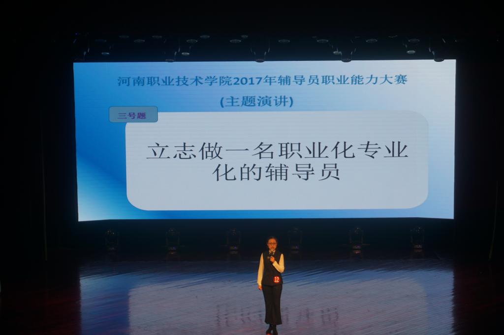 本届辅导员职业能力大赛包括主题班会、笔试、案例分析与主题演讲等4个环节,全校辅导员均参加了比赛。通过前2个环节的比拼,12名辅导员成功晋级决赛。决赛共设置案例分析和主题演讲两个环节,参赛选手提前20分钟随机抽题。案例分析环节辅导员围绕案例中的问题本质、解决思路、实施办法及相关启示进行阐述,展现了辅导员老师在对学生教育、管理、服务工作中的分析判断和解决问题的能力;在主题演讲环节,参赛辅导员们为在场观众展现了学生思想政治教育工作中的点滴故事,或催人泪下,或群情激昂,赢得了在场观众的阵阵掌声。经过激烈角逐,工商管理系王林和环境艺术工程系马臻臻分获一等奖;工商管理系王希、环境艺术工程系石保艳、信息工程系梁静和蔡晶晶分获二等奖;工商管理系董岳磊、环境艺术工程系卫娟、机电工程系郭晓静、烹饪食品系张宇、西校区喻舒瑶和附属技校张智慧分获三等奖。