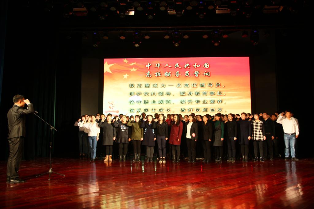 比赛结束后还进行了辅导员风采展示环节,全体辅导员上台重温《辅导员誓词》,并合唱了《辅导员之歌》。最后隆重举行了本届大赛的颁奖典礼。