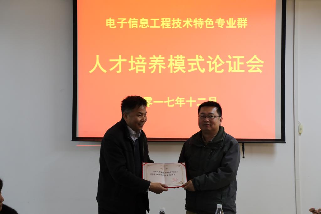 会上,电气工程系系主任李伟介绍了该系在学院创新发展行动计划以及优质高等职业院校项目中承担的任务以及电子信息工程技术专业群的建设情况,宣布成立电子信息工程技术专业群指导委员会,聘请与会专家为电子信息工程技术专业群指导委员会委员,并颁发了聘书。他表示,电子信息工程技术专业群人才培养方案要按照指导委员委员们的建议将继续进行优化,按照学院项目的推进要求,以期高水平完成项目建设。与会专家审议并通过了电子信息工程技术专业群指导委员会章程。
