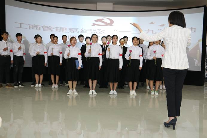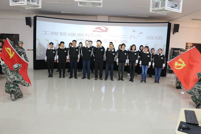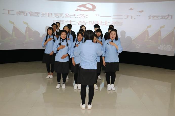 为纪念一二·九爱国运动82周年,11月30日下午,工商管理系纪念“一二·九”运动师生红歌合唱比赛在该系实训室隆重举行,8支参赛队伍为党献唱红歌。