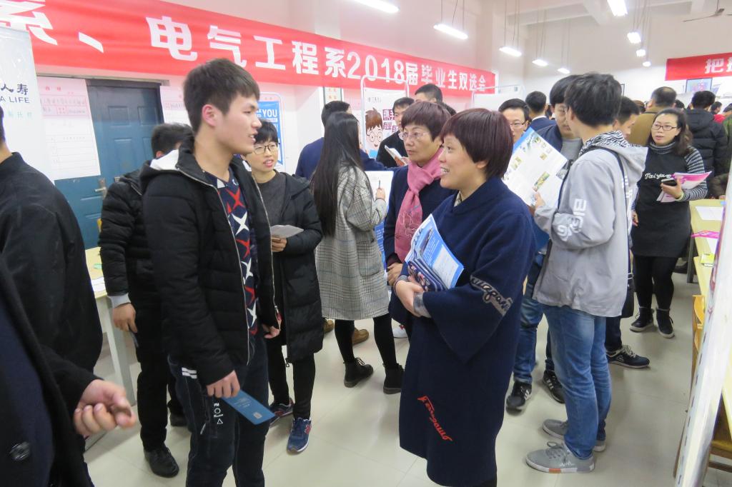 11月21日上午,机电工程系和电气工程系共同在图书馆一楼举办2018届毕业生双选会。宁波勋辉电器有限公司、温州长江汽车电子有限公司、安徽美芝精密制造有限公司和中国电子科技集团公司第二十七研究所等200余家省内外用人单位前来招聘,为两系1390余名毕业生提供近2000余个就业岗位,70%的毕业和企业生初步达成就业意向。