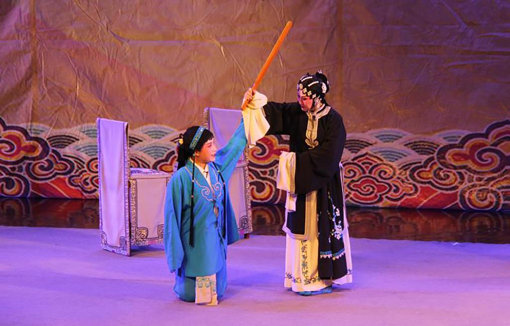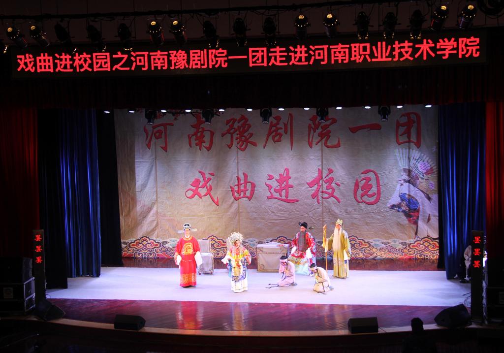 下午三点,由河南省豫剧一团老师为现场观众作戏曲知识专题讲座,讲述了豫剧的历史渊源、名人名剧、流派分支、表演体系以及“四功五法”等戏曲知识,并为大家示范了“唱、念、做、打”等戏曲基本表演技巧,使在座师生了解了戏曲常识,受益匪浅。讲座结束后,豫剧院一团的演员们分别在下午和晚上为观众上演了豫剧传统经典剧目《三娘教子》和《清风亭》。艺术家们精湛的演技、字正腔圆的演唱,博得了阵阵热烈掌声。观众在享受文化大餐的同时,也进一步感受着人性的光辉与道德的洗礼。