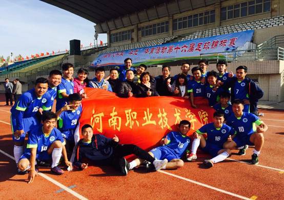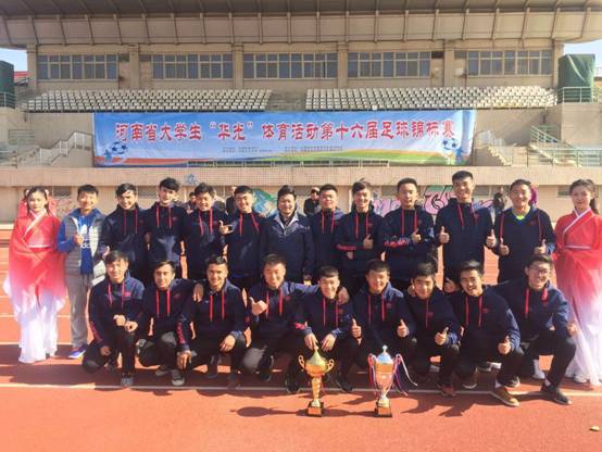 11月5日至10日,在河南省大学生“华光”体育活动第十六届足球锦标赛高职高专组比赛中,我院足球代表队以全胜的优异战绩获得冠军,并获得“体育道德风尚奖”。基础教学部教师王彬获“优秀教练员”称号,工商管理系参赛学生邢磊、努尔艾力·居麦,汽车工程系参赛学生伊力亚尔·米太力甫和环境艺术工程系参赛学生余卓航等4名同学分获“优秀运动员”称号。