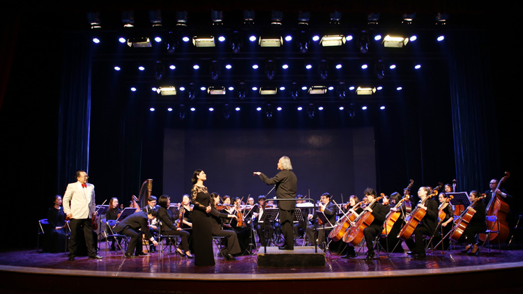 演出开始前,国家一级演员、著名男中音歌唱家王立民向全场师生们介绍了歌剧的基本知识和观赏礼仪,幽默风趣的讲解引人入胜。在师生们热切的期盼中,河南交响乐团的演奏家们以气势宏大的法国歌剧《卡门》序曲拉开了演出的帷幕。随后,中央歌剧团的歌唱家们用纯熟的意大利语、法语、德语为师生们深情演绎了世界经典歌剧《弄臣》、《汤豪塞》、《图兰朵》、《茶花女》等精彩选段。歌唱家们时而在舞台高歌、时而在幕后对唱、时而又从观众当中走出,他们精湛的唱功、专业的演奏技艺,诠释了艺术的最高境界。空灵悦耳的花腔高音、撼人心脾的乐曲旋律,点燃了师生们的激情。演出期间,艺术家王立民与我院烹饪食品系学生进行了互动,默契地演绎了《茶花女》歌剧选段《在普罗文查地方》中父子情深的场景,引起了大家的共鸣。最后,全体艺术家们共同演绎了耳熟能详的《饮酒歌》,在欢快的韵律中,全场观众共同起立随着音乐打起了节拍,以热烈的掌声向艺术家们致敬。(供稿:王璐,审稿:朱永宽)